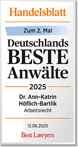 Best Lawyer im Bereich Arbeitsrecht 2025 ausgestellt von Handelsblatt