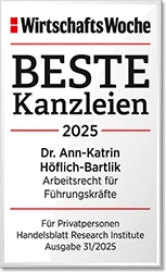 Empfohlener Anwalt für Führungskräfteberatung 2025, ausgestellt von Wirtschaftswoche